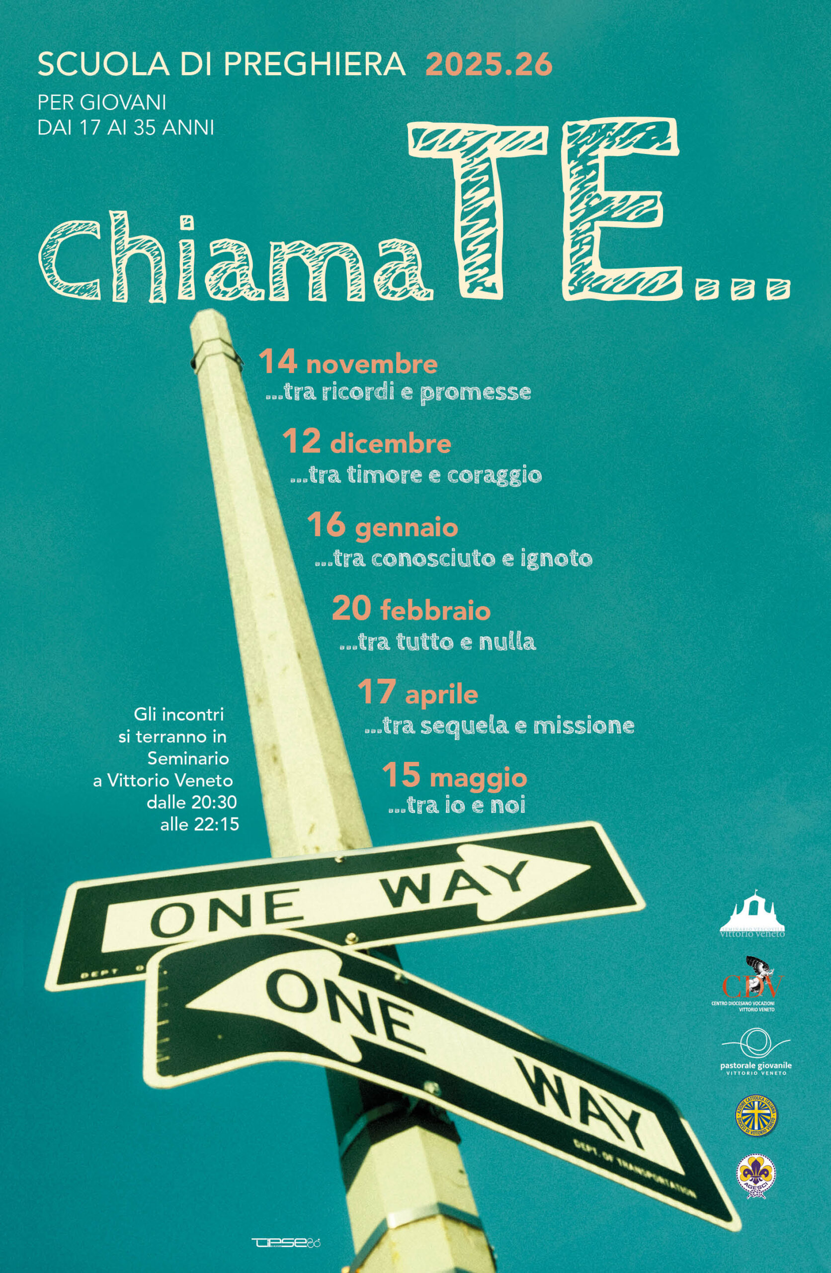 La scuola di Preghiera è un itinerario di preghiera realizzato insiema da Seminario Vescovile, centro  Diocesano Vocazioni, Servizio diocesano di Pastorale Giovanile, Azione Cattolica e Agesci, che offre ai giovani dai 17 ai 35 anni l’opportunità di un’esperienza di preghiera. Qui l’ascolto della Parola e l’adorazione eucaristica sono elementi principali per la formazione di una preghiera personale e comunitaria  e la possibilità di avere un accompagnamento spirituale personale, con la guida di un sacerdote. Questo dentro un clima di fraternità e condivisione.